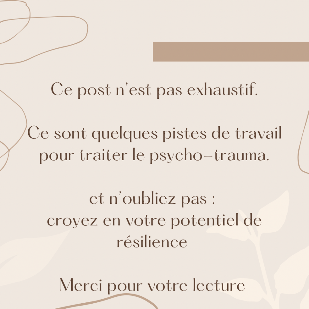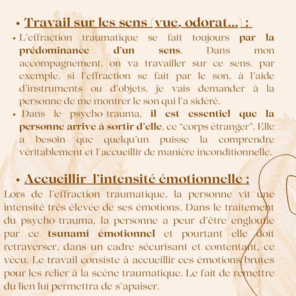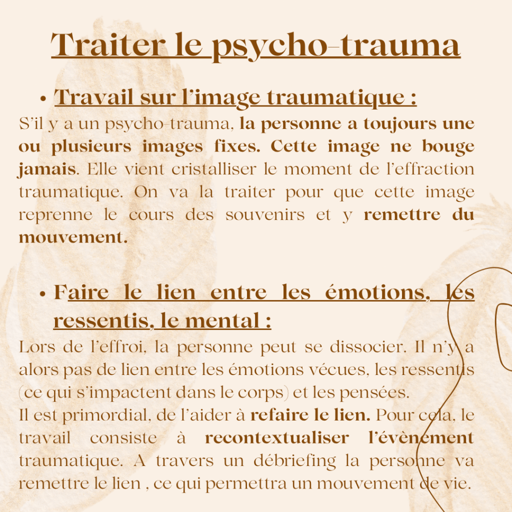 Quelques pistes de travail pour traiter le psycho-trauma tel que je le pratique.
