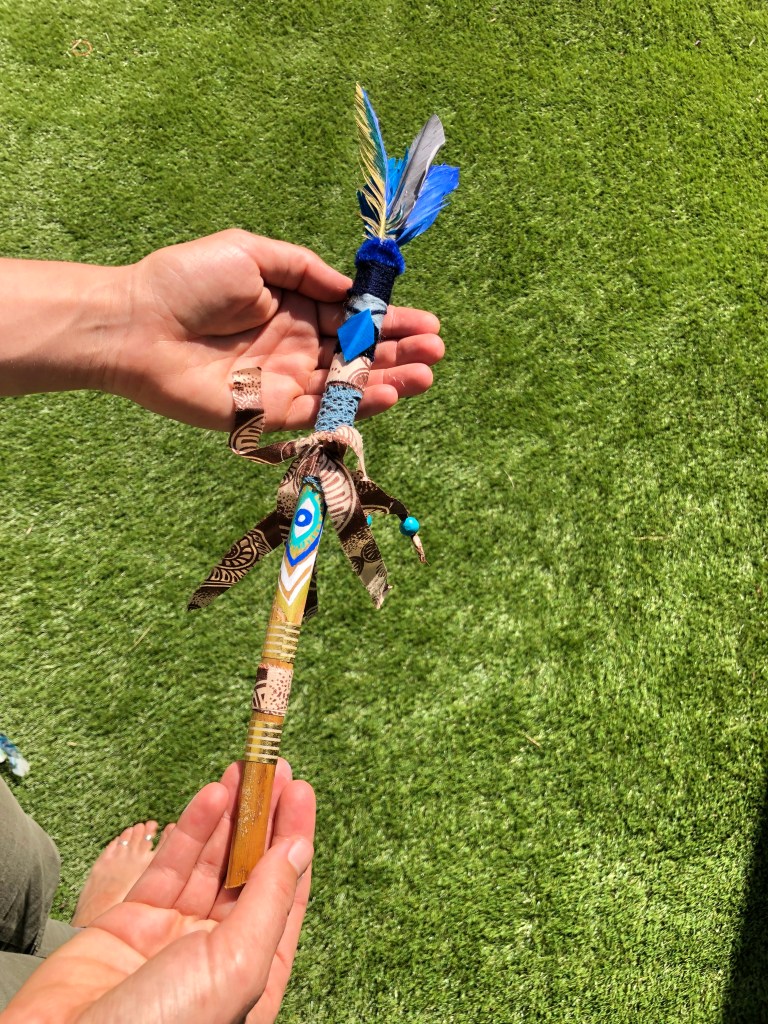 Journée de travail au soleil avec marine pour concevoir un atelier « créer son bâton précieux en lien avec une intention personnelle « pour apprendre à s’écouter.