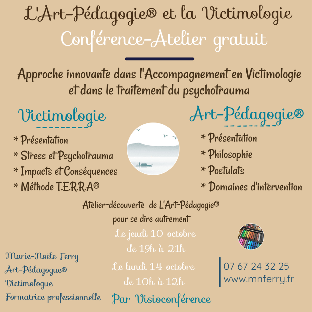 Des temps de présentation de l’Art-Pédagogie® axée sur l’accompagnement en victimologie, vous seront proposés.