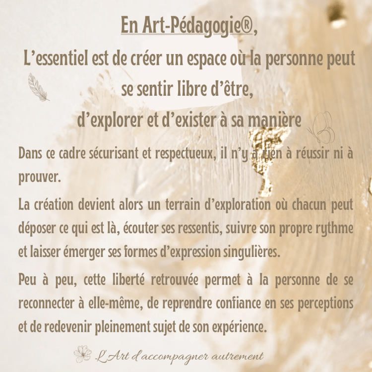 ✨ En Art-Pédagogie®, nous ouvrons un espace différent. Un espace où il n’y a rien à prouver, rien à réussir, rien à corriger.
