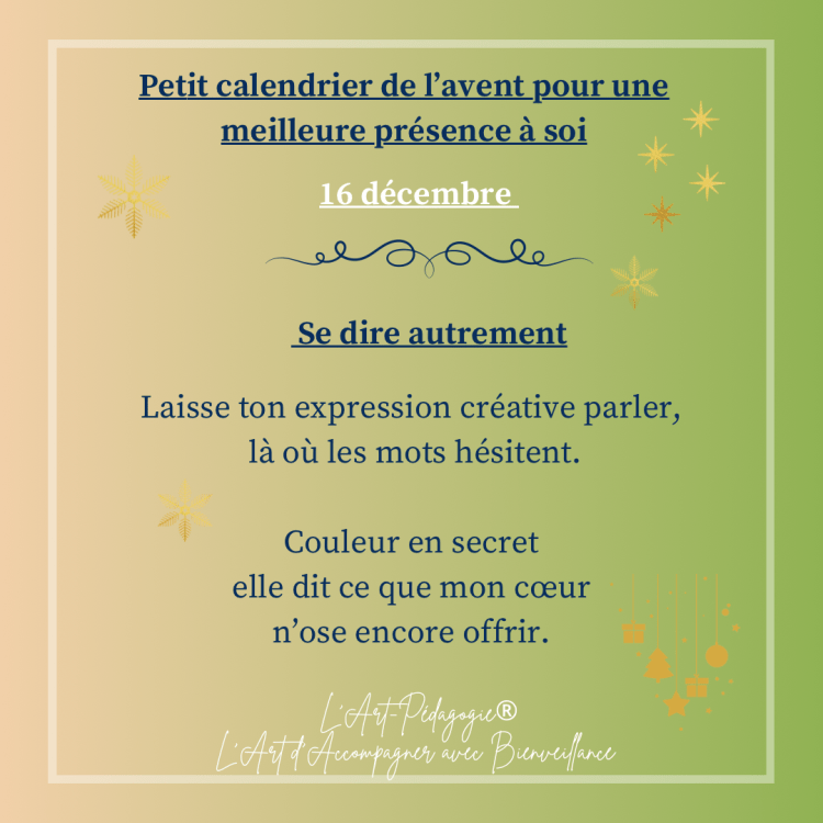 L’Avent devient un parcours Art-Pédagogie® pour rencontrer ce qui en vous cherche à exister.