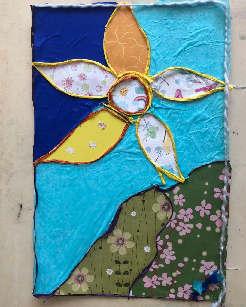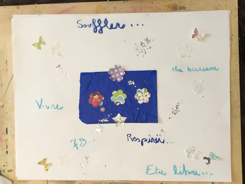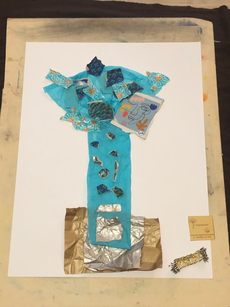 Ceci n’est pas un collage…classique. C’est une nouvelle technique créée en Art-Pédagogie® avec une professionnelle du vitrail. Nous l’avons appelé : le Collage-Vitrail.
