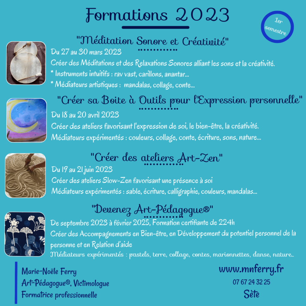 Développez vos compétences en Accompagnement par l’Expression de Soi, la Créativité en proposant des ateliers Bien-être, Méditation sonore, Slow-zen pour favoriser une meilleure présence à soi et au monde.